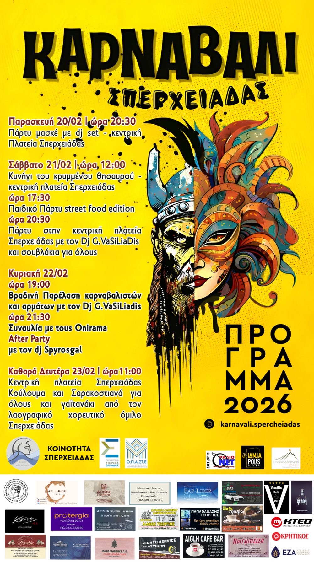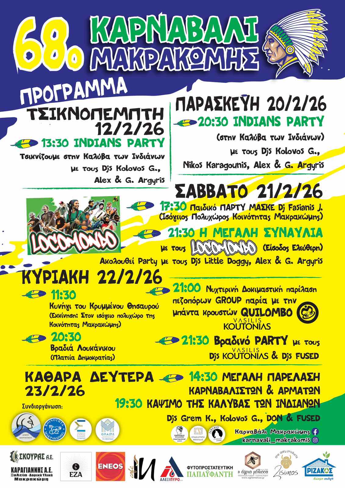 «Φόρα το χαμόγελό σου και έλα! Το Καρναβάλι του Δήμου μας επιστρέφει πιο δυνατά από ποτέ!» Ετοιμαστείτε για την πιο μεγάλη γιορτή της χρονιάς! Ο Δήμος Μακρακώμης ανεβάζει την ένταση και μεταμορφώνει την πόλη σε μια τεράστια σκηνή χρωμάτων, μουσικής και ασταμάτητου κεφιού. Αφήνουμε πίσω την καθημερινότητα και γινόμαστε όλοι μια παρέα! Το φετινό πρόγραμμα των καρναβαλικών εκδηλώσεων είναι σχεδιασμένο για να μας ξεσηκώσει: • Street Parties & DJ Sets: Η πόλη θα δονείται από ανεβαστικούς ρυθμούς σε κάθε γωνιά! • Συναυλίες: Οι Locomondo και οι Onirama έρχονται να μας ξεσηκώσουν! • The Big Parades: Οι μεγάλες παρελάσεις της Κυριακής και της Δευτέρας! Άρματα, ευφάνταστες στολές και ένας καταιγισμός από κομφετί και μουσική που θα μας παρασύρει όλους. • Carnival Vibes Παντού: Δράσεις για μικρούς και μεγάλους που θα μείνουν αξέχαστες. Σας περιμένουμε όλους να γράψουμε μαζί την πιο τρελή ιστορία αυτού του χειμώνα! Μην λείψει κανείς! Διαλέξτε τη στολή σας και ελάτε να ζήσουμε την εμπειρία.