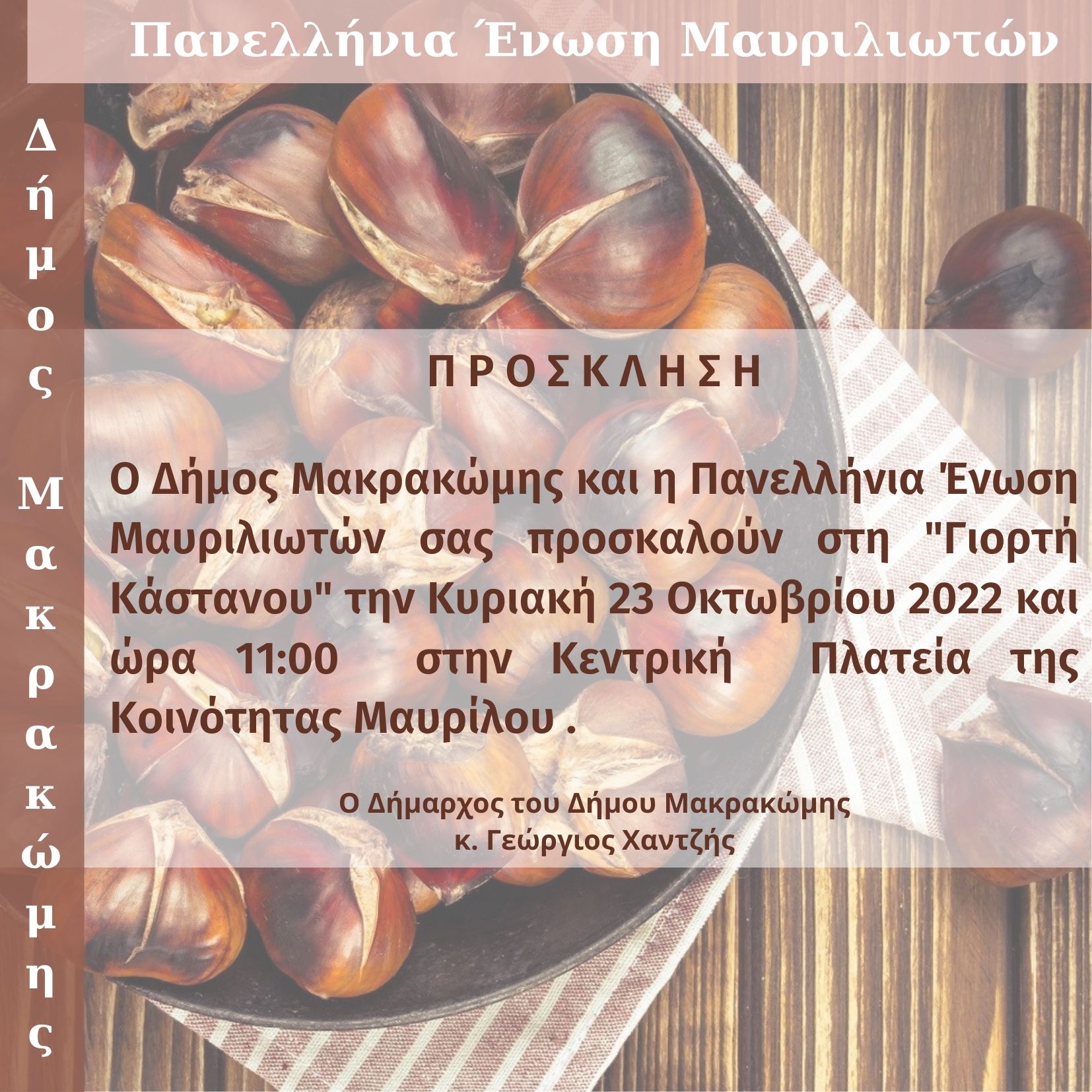 “Γιορτή Κάστανου” στην Κοινότητα Μαυρίλου την Κυριακή 23 Οκτωβρίου 2022