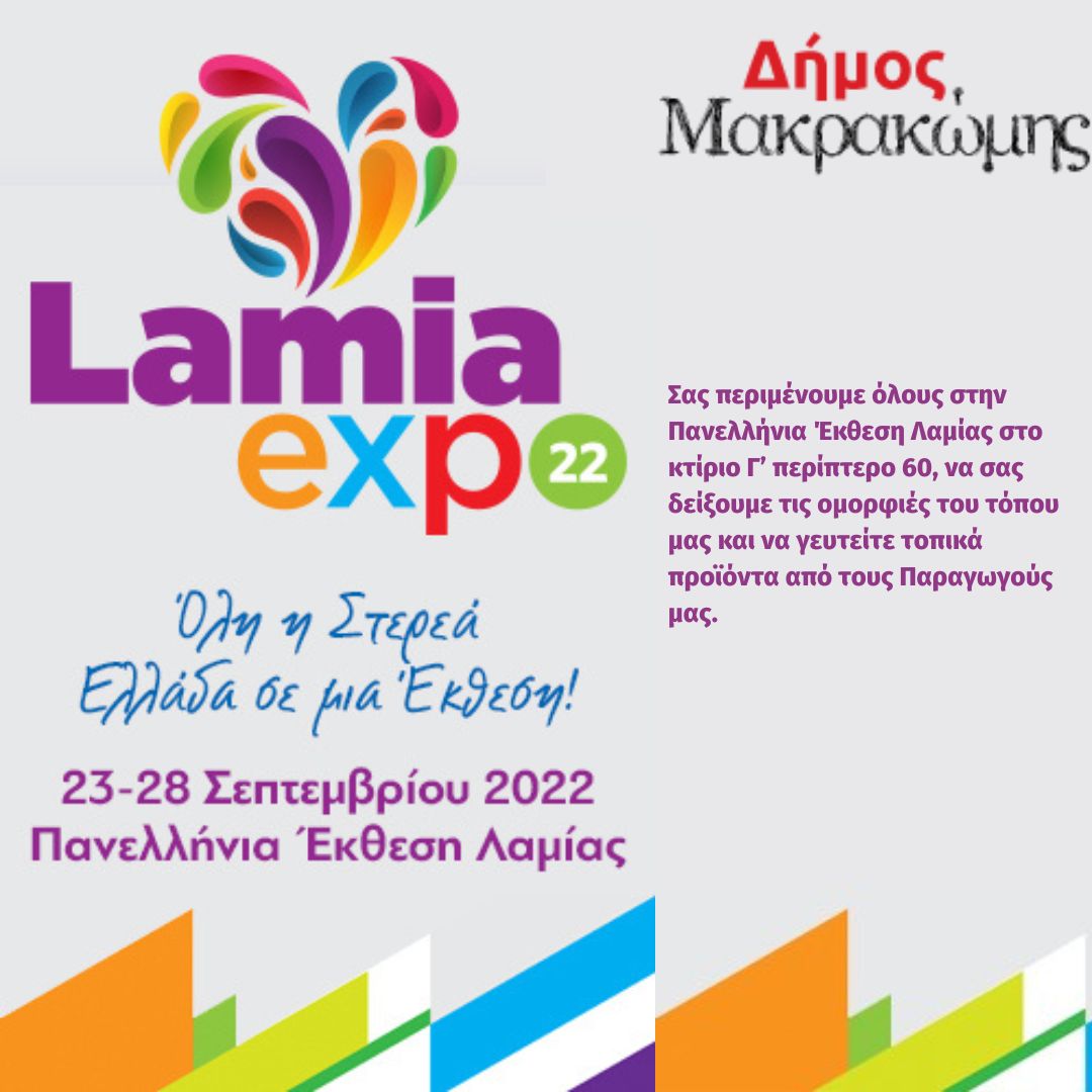 Από τις 23 εώς τις 28 Σεπτεμβρίου 2022 ο Δήμος Μακρακώμης θα λάβει μέρος στην Lamia Expo 2022.