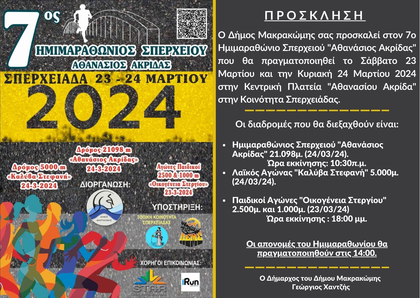 – Ημιμαραθώνιος Σπερχειού «Αθανάσιος Ακρίδας» 21.098 μ. (Κυριακή 24 Μαρτίου 2024)